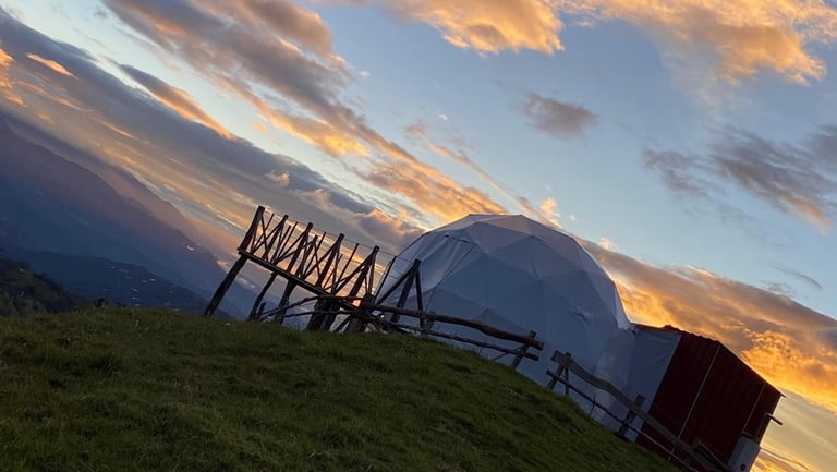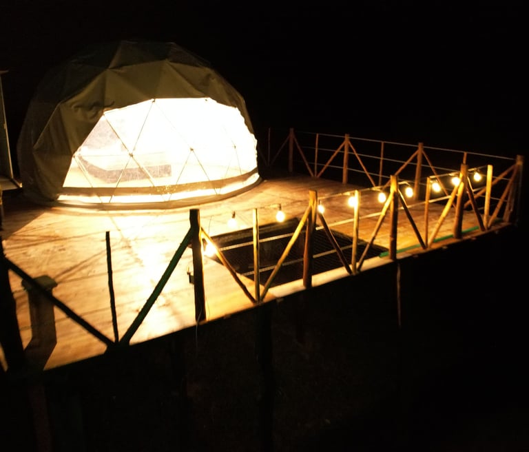 A una altura de 3.100 metros sobre el nivel del mar, tenemos este Domo Geodésico de 60 m2, con Jacuzzi interno de hidromasaje, Malla catamarán, Puff, ducha caliente, cobijas térmicas y equipo de sonido. Tendrás la mejor vista de nuestra región, a la falda del Volcán Doña Juana y con la vista de los volcanes Galeras, Cumbal y Azufral. Además, podrás divisar pueblos como Buesaco, Nariño y Chachagüí.